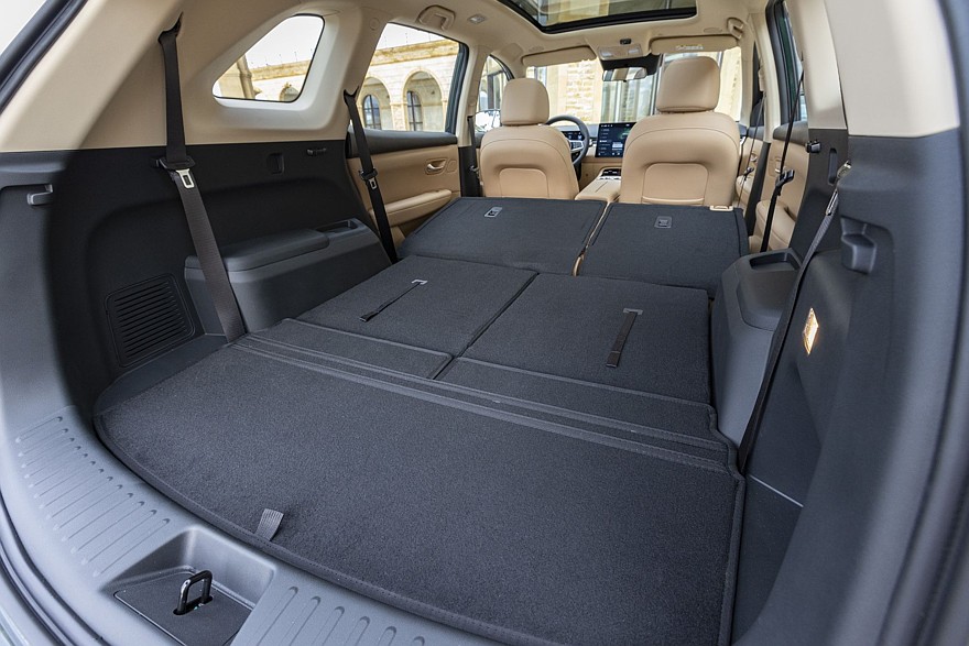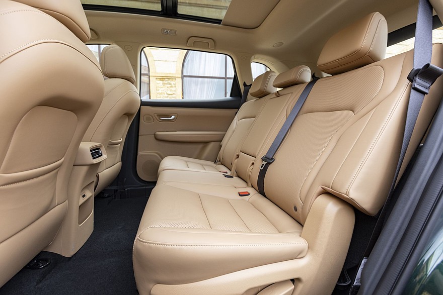 Из обновления оснащения первое, что бросается в глаза, это атмосферная контурная подсветка с 256 вариациями цветов и аудиосистема, у которой теперь 13 динамиков. Рулевое колесо обогревается теперь полностью, а не на отдельных сегментах, добавился обогрев сидений второго ряда и форсунок стеклоомывателя. Кроме того, на втором ряду теперь есть и вентиляция, и в любое время года там должно быть комфортно. Правда, управления вентиляцией и подогревом у пассажиров галерки нет – ими заведует только водитель.
