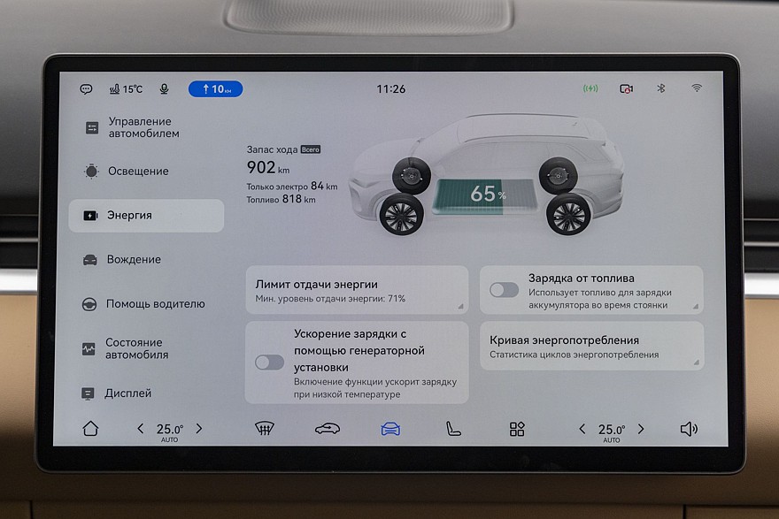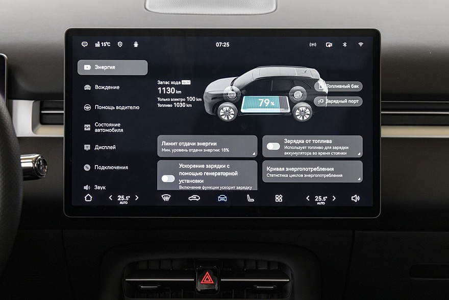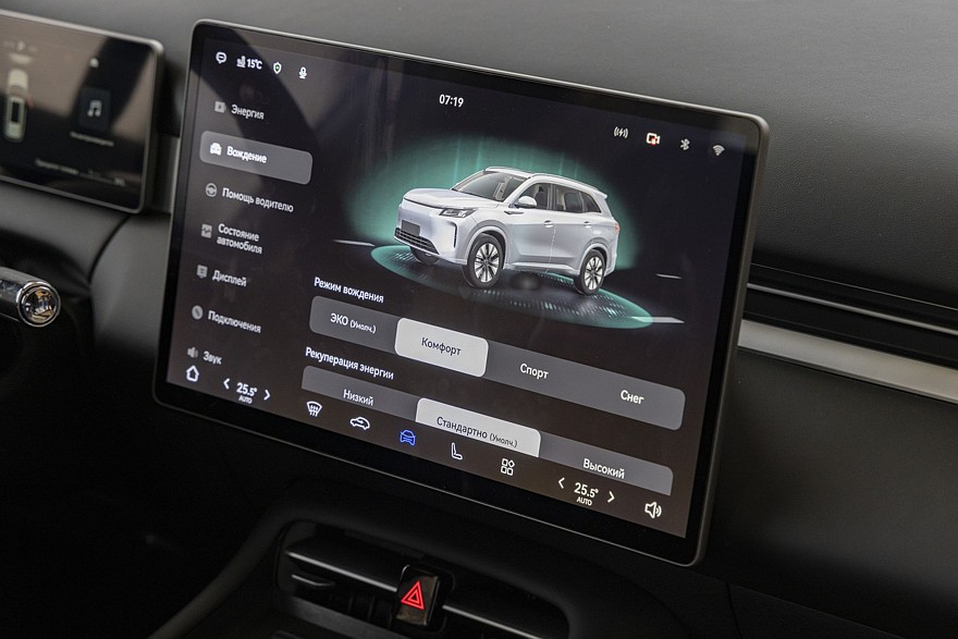 Поскольку у кроссовера есть батарея LFP емкостью 25,1 кВт*ч, у него есть и запас хода на электротяге. Evolute говорит о 165 км по циклу WLTC, однако все мы понимаем, что этот показатель справедлив только для неких идеальных условий и в реальной жизни он заметно ниже.