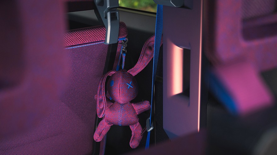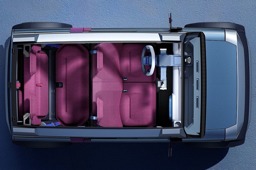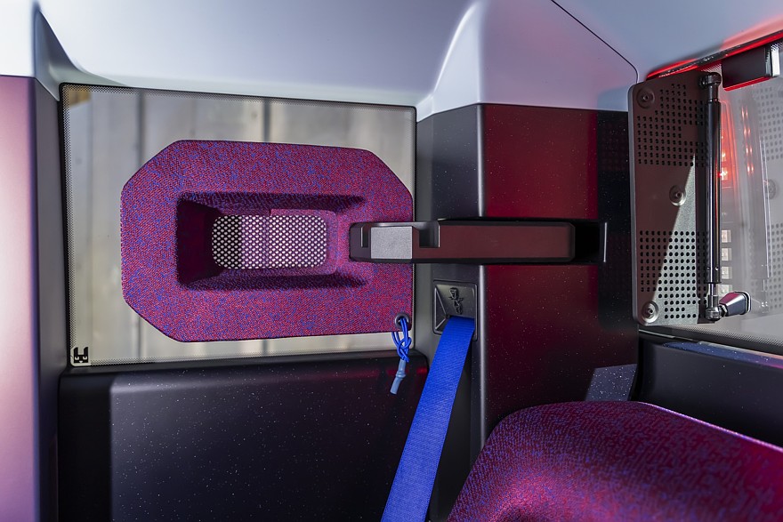 В конструктивистскую на вид переднюю панель вмонтированы две фронтальные подушки безопасности, боковых подушек не предусмотрено, но разработчики обещают достойную защиту при боковых ударах благодаря новому прочному, полученному из вторсырья композиту Starkle. Роль ключа и мультимедийной системы будет выполнять смартфон водителя. Аудиосистема представляет собой навесную колонку, закреплённую на передней стойке кузова с помощью фирменного крепления YouClip, всего в салоне предусмотрены 11 таких креплений для различных аксессуаров.