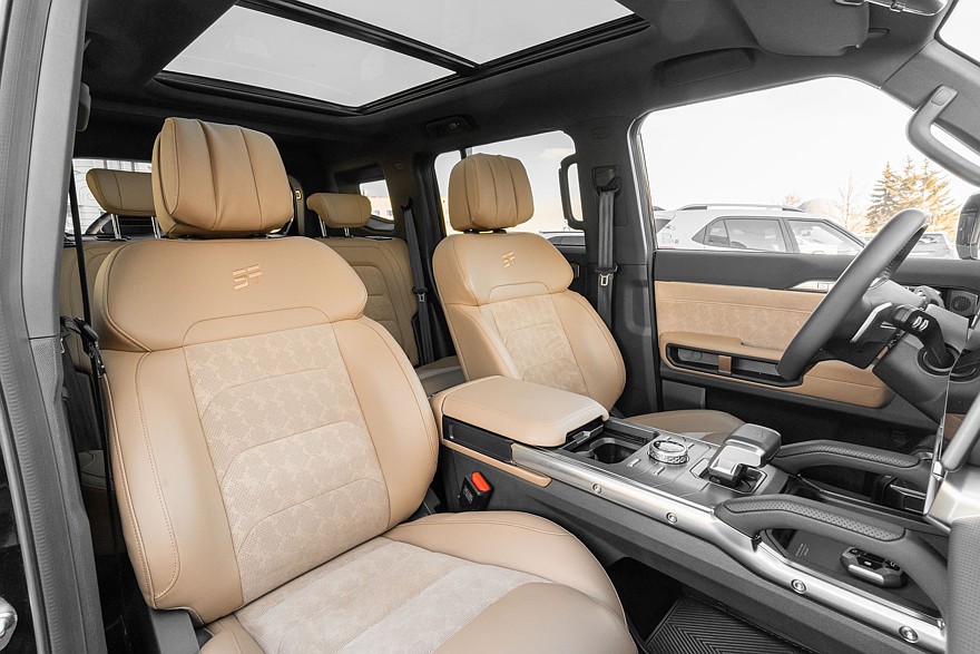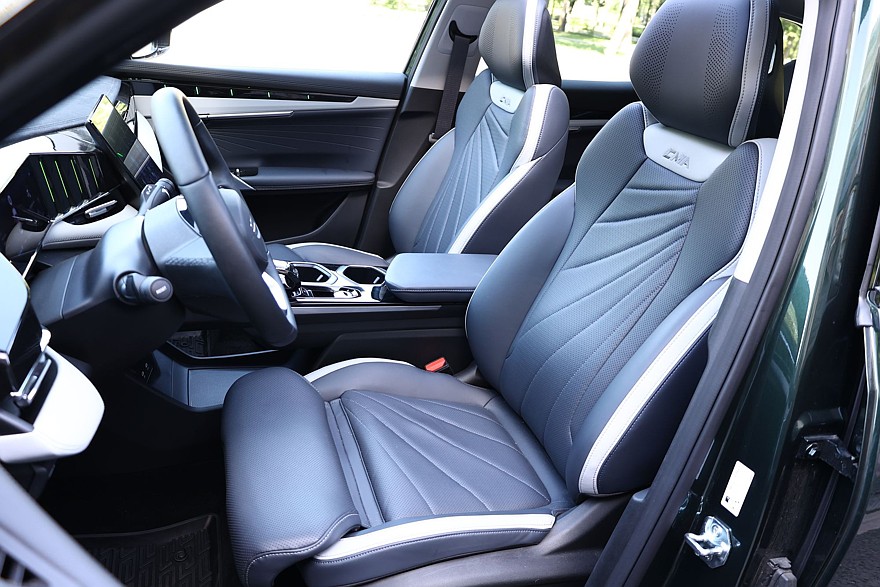 Особенности, свойственные премиуму, здесь начинаются с разнообразия цветов экстерьера и интерьера. Для кузова помимо классических черного, белого и серебристого можно заказать еще два сдержанных оттенка: темно-серый «Титан» и глубокий зеленый «Эмеральд». А для интерьера помимо классического черного доступен и благородный коричневый цвет материалов отделки.