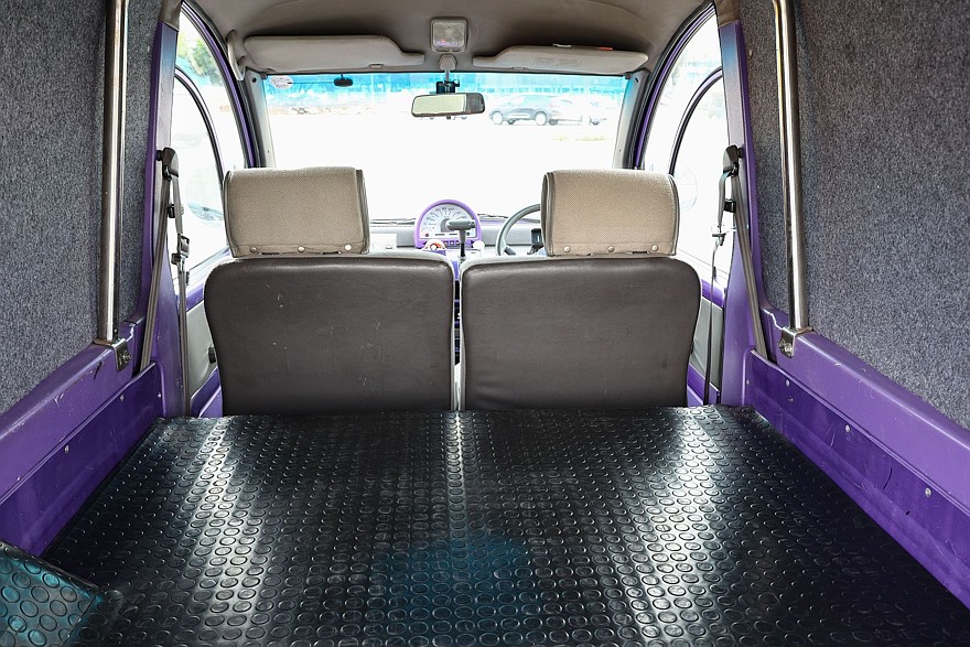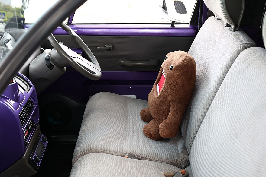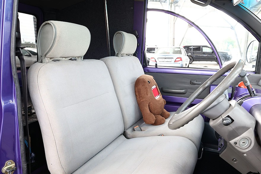 Интерьер машины не менее затейлив, чем экстерьер. Это и сегментарно опускающиеся стекла дверей, как у Subaru Alcyone, и невероятные круглые окна-иллюминаторы по бокам грузового отсека. Последние, к сожалению, были не у всех модификаций, и на нашей машине их нет. Зато есть все остальное: односпицевый руль, «выносная» приборная панель, напоминающая будильник, улитки в оформлении элементов салона…