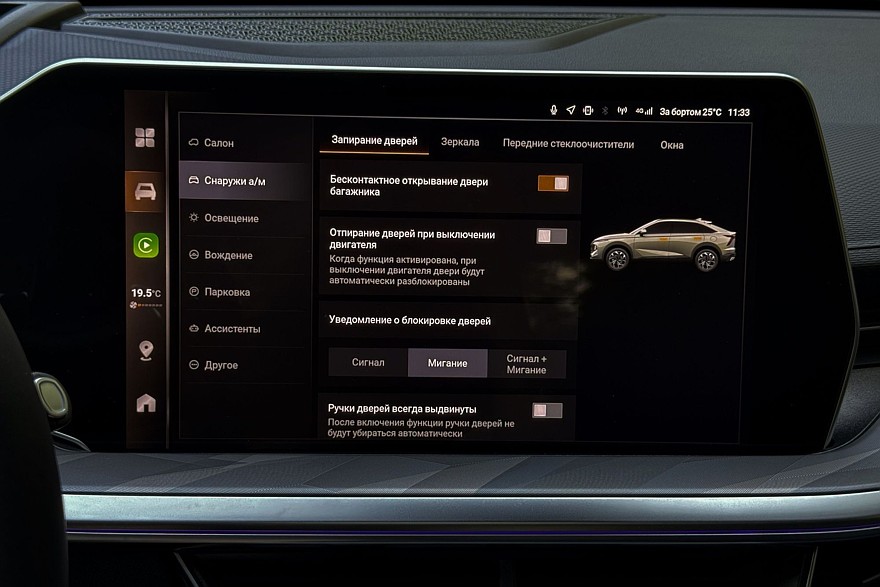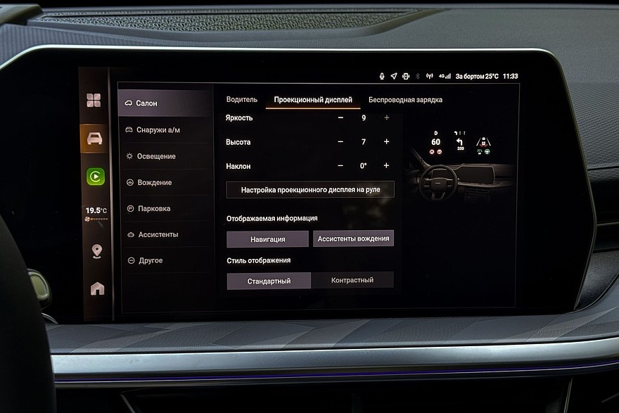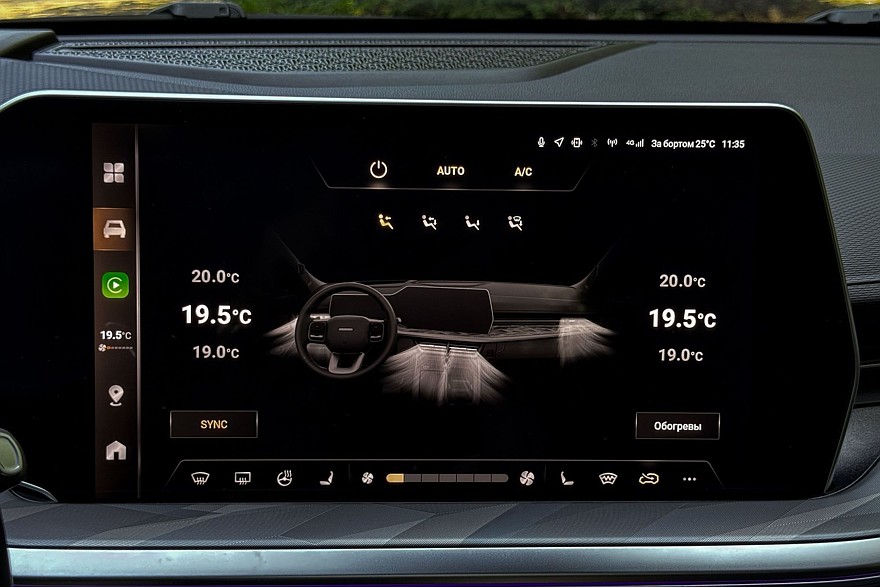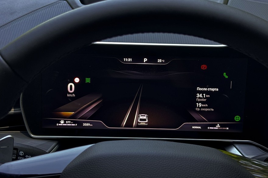 Приборная панель диагональю 12,3 дюйма и 14,6-дюймовый центральный дисплей нам знакомы по F7. У «приборки», увы, так и не появилась классическая тема оформления с нормальными шкалами – только разбросанные по углам цифры и бесполезная анимация дорожной обстановки. Тачскрин работает шустро, изображение яркое и высокого разрешения, есть встроенные сервисы от Яндекса, меню логично и незатейливо – ничего нового.